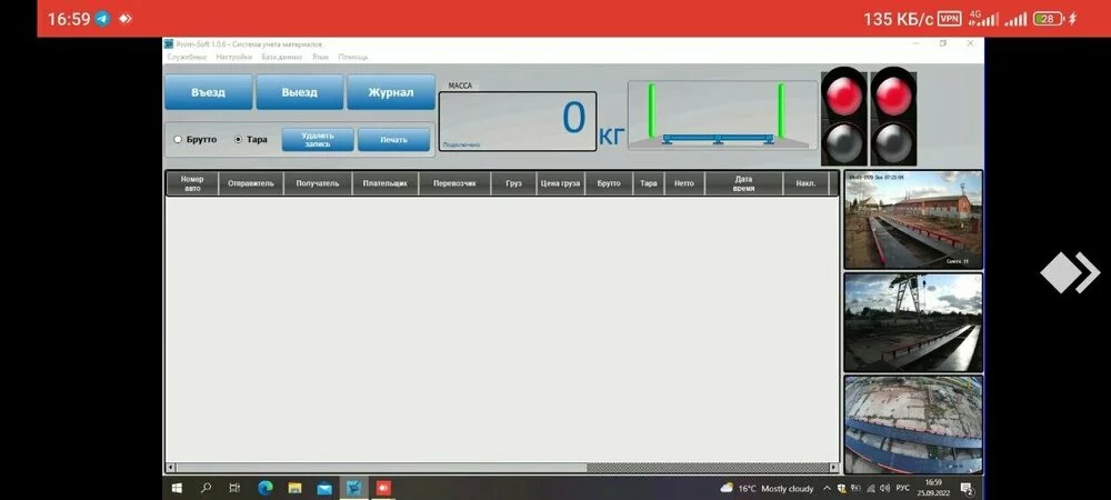 постановка автомобиля на весах, состояние загрузки кузова автомобиля, фотография монитора весовщика