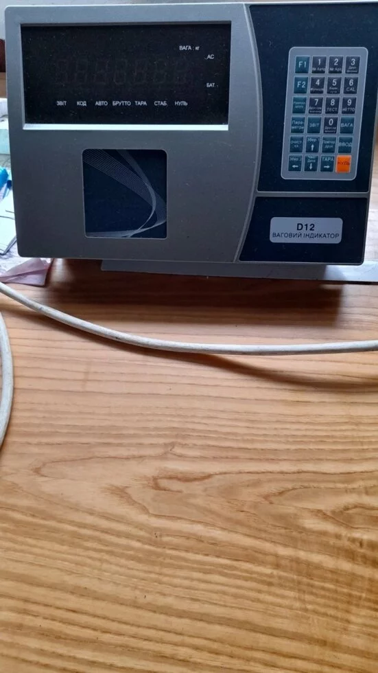 Цифровой индикатор D12Y, пластиковый корпус, защита IP54, выносной аккумулятор, подключение к ПК, подключение дублирующего табло, встроенная память, сохранение результатов взвешивания